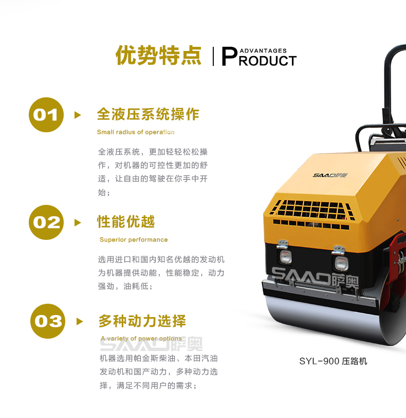 SYL-900座駕壓路機主要用于溝渠基礎,道路,體育場地的壓實整平,也可用于壓實瀝青表面的作業(yè)。